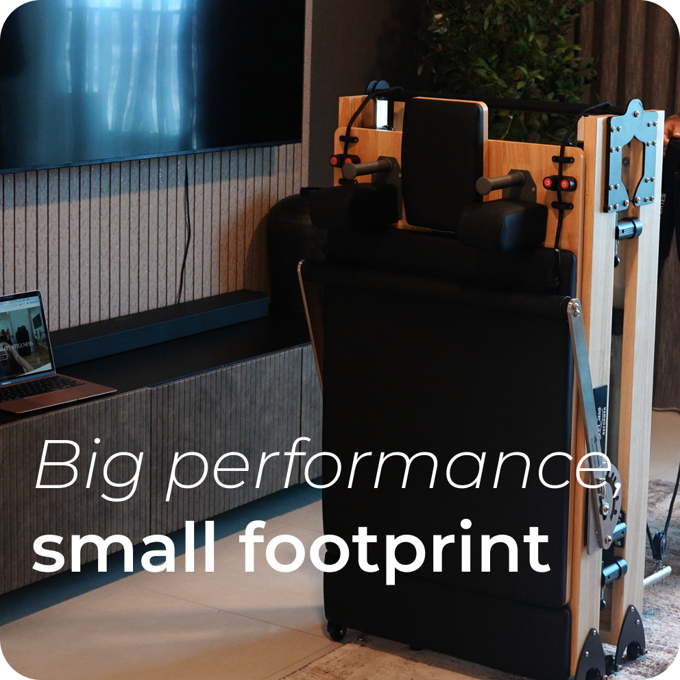 Designed for modern living, this sleek reformer delivers a full studio-quality Pilates experience while folding neatly away when not in use.